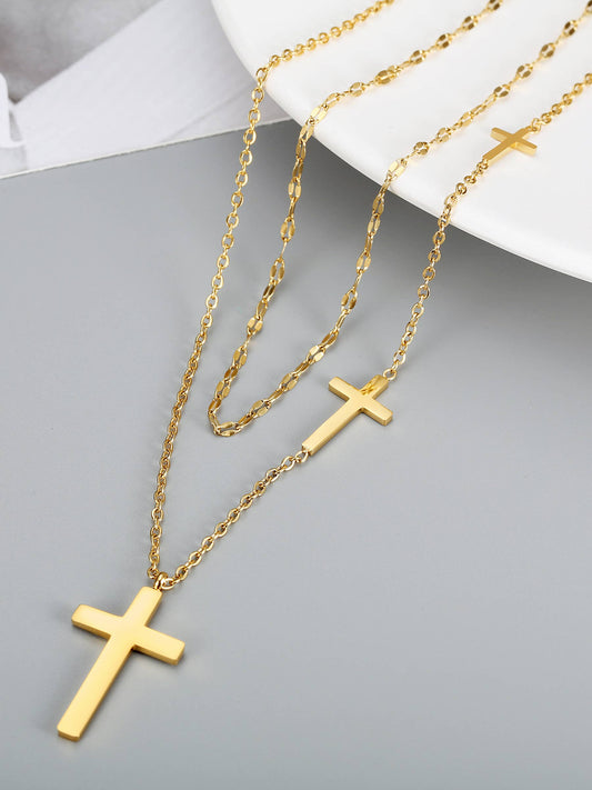 Double Layered Cross Pendant Collarbone Chain Necklace