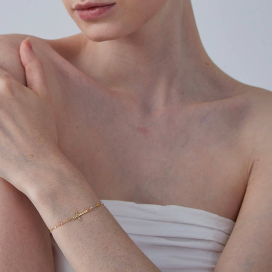 Dainty Boho Color Bead Cross Bracelet in 925 Sterling Silver
