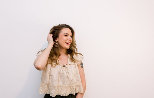 LACE-TRIMMED BLOUSE: SAND